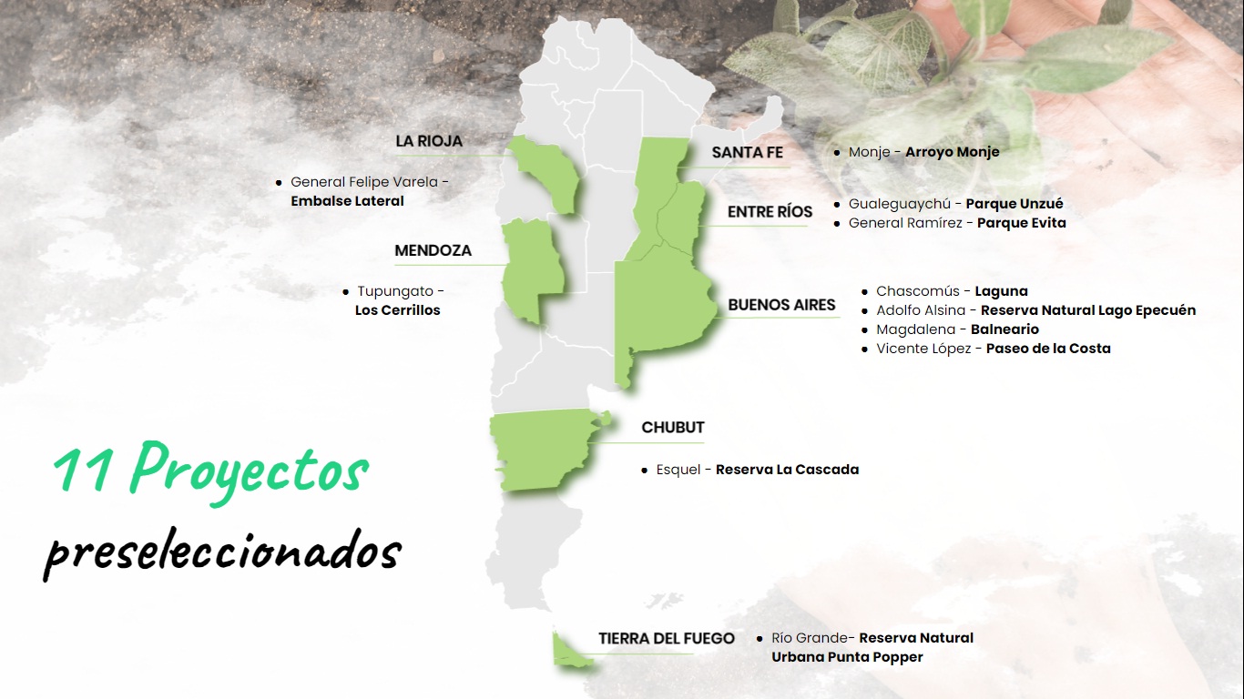 Las otras tres iniciativas seleccionadas son: Chascomús, con un proyecto para realizar un circuito eco-turístico en la laguna de la localidad; Gualeguaychú, con un proyecto para regenerar el Parque Florístico del Parque Unzué, en la ribera del río; y Río Grande, con un proyecto para restaurar el área de anidamiento de aves migratorias en la Reserva Natural Urbana Punta Popper. Estas iniciativas recibirán becas en programas de fortalecimiento de capacidades de CESUS, libros de fotografía de naturaleza donados por la Biblioteca del Naturalista y botellas reutilizables de la campaña Millón de Árboles.