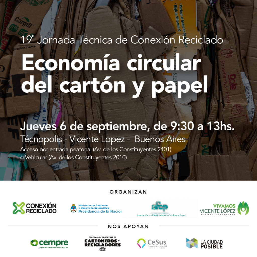 El próximo jueves 6 de septiembre, en la localidad de Villa Martelli, Vicente López, se organizará la 19° Jornada Técnica de Conexión Reciclado. El encuentro se centrará en la valorización, desde una mirada de economía circular, del cartón y papel.